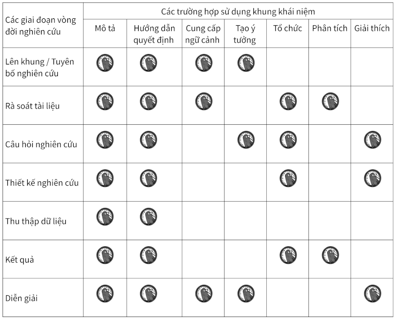 Các trường hợp sử dụng khung khái niệm trong suốt vòng đời nghiên cứu