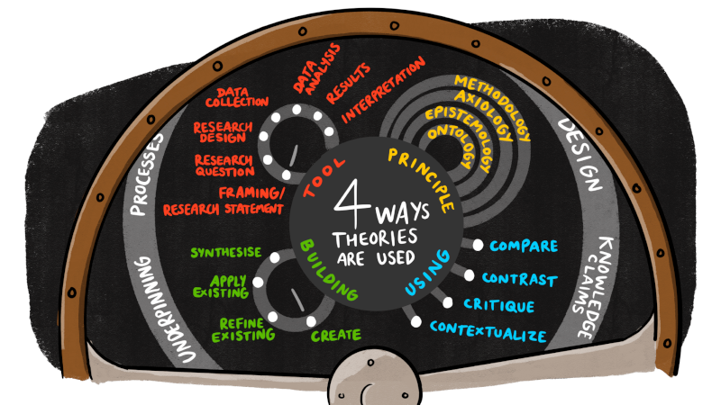 Dựa trên Oliver (2002), Passey (2020) phân biệt bốn cách cơ bản mà lý thuyết được sử dụng trong nghiên cứu và học thuật. Từ mỗi phương thức cơ bản này, một loạt các yếu tố khác nhau trong quá trình nghiên cứu có thể được hàm ý.